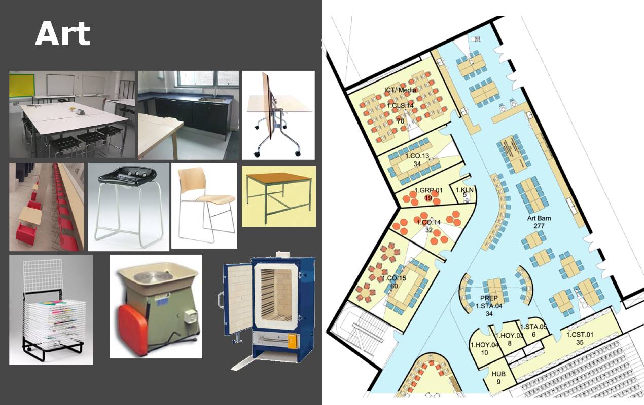 As a Designer and FF&E (Furniture, Fixtures & Equipment) Consultant, I can design with the full knowledge of how all teaching & learning spaces work and its needs, from the machinery, to the fixed furniture by working with the client and everyone involved (all services and architects) to achieve many diverse spaces (of all kinds of learning) from classrooms to libraries, dining halls, ICT, sports halls, recording studios etc.